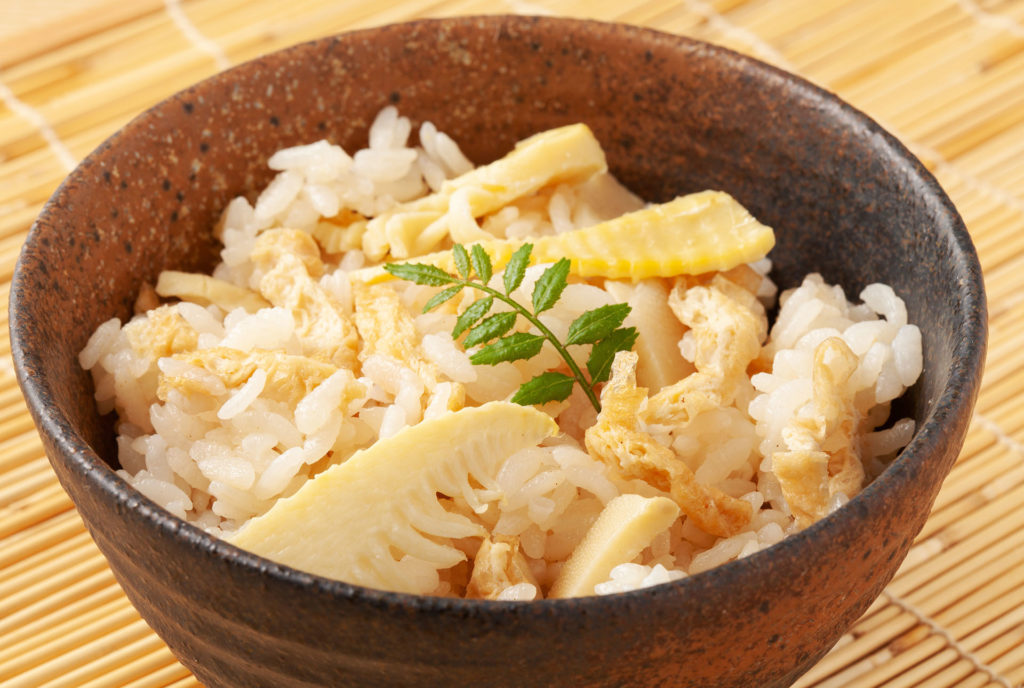 2 たけのことわかめの炊き込みご飯:たけのこ中心 わかめは後のせ
